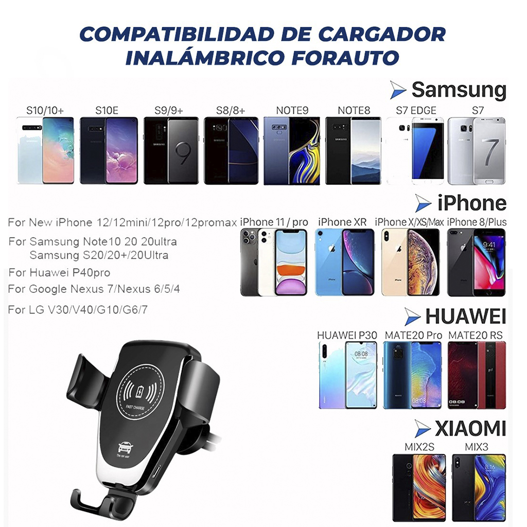 Aprovecha la función inalámbrica de tu smartphone con nuestra carga rápida de 10W para Samsung y 7.5W para IPhone. Compatible a partir del Iphone 8 hasta el 12 Pro Max y con Samsung Serie Note y Serie S.